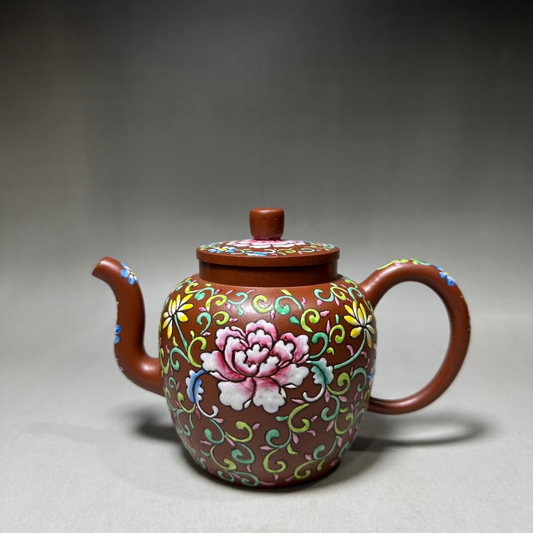 - TM7#5115【3.1】人間国宝 中国骨董 紫砂壺【琺瑯彩紫砂壷の逸品です】磁器 工芸品 陶芸 精美彫 置物 收藏品 伝世家珍