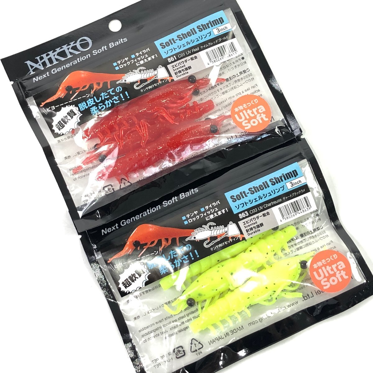 > ニッコー ソフトシェルシュリンプ 3インチ 2袋セット【未使用品】 | NIKKO ニッコー化成 海釣り タイ ヒラメ マゴチ 根魚 ワーム H203
