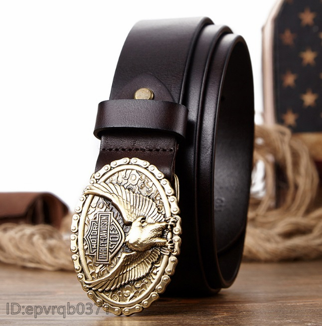 > 新品◇メンズベルト 上質本革 イーグルバックル ピンバックル式 牛革 レザーベルト 紳士用 ポンチ付き 長さ調整可能 /茶色