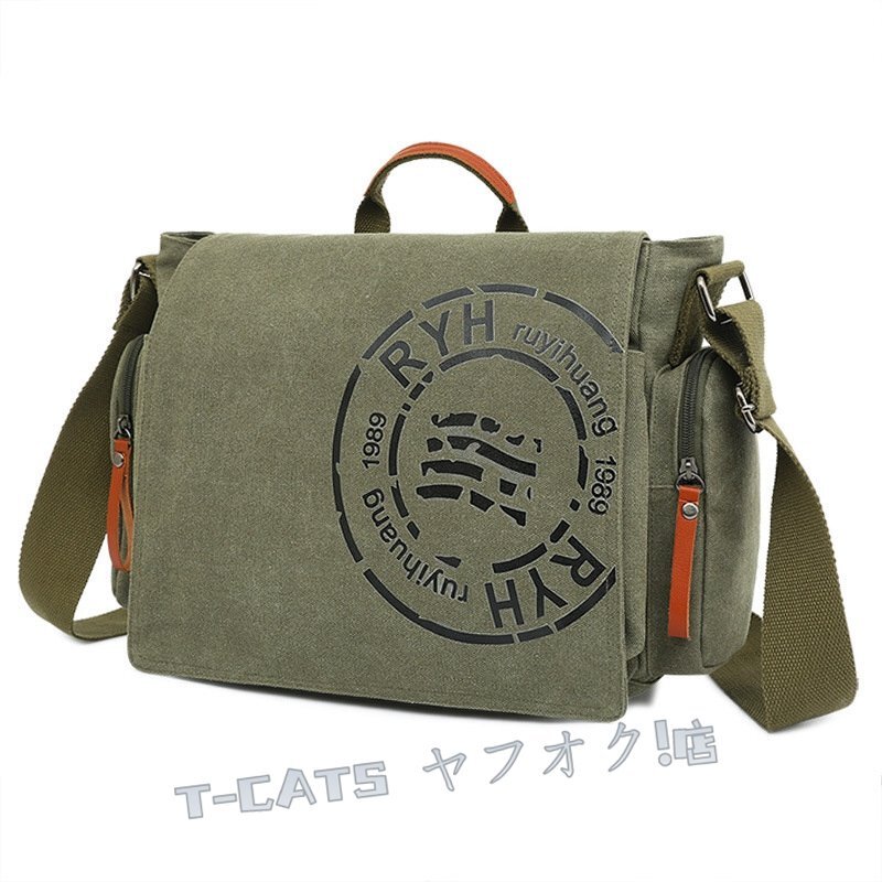 - ☆新品多機能 帆布 ショルダーバッグ メンズバッグ 斜めがけバッグ 大容量 運動 2WAYバッグ 帆布 カーキ色 軽量 無地 鞄 カバン グリーン