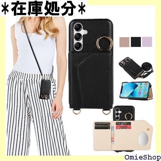 > Galaxy A54 5G ケース ショルダー ストラ バー 斜め掛け リング付き 首掛け ストラップ ブラック 1171