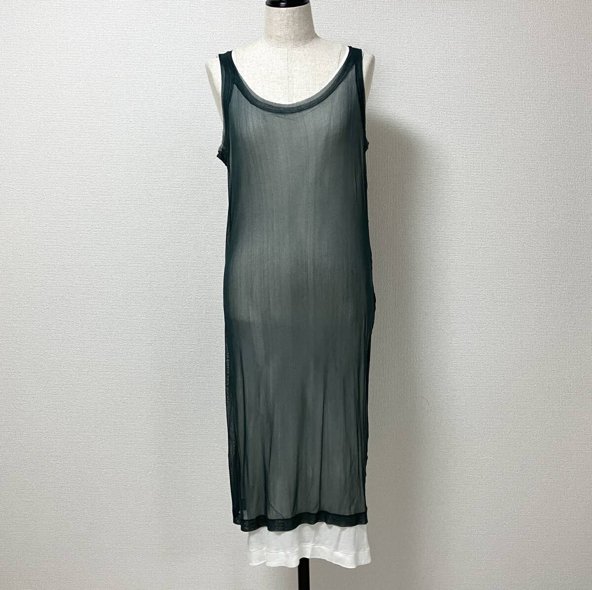 - Yohji Yamamoto Femme シルク レイヤード シアー ノースリーブ ワンピース グリーン 緑 2サイズ ヨウジヤマモト archive 5060657
