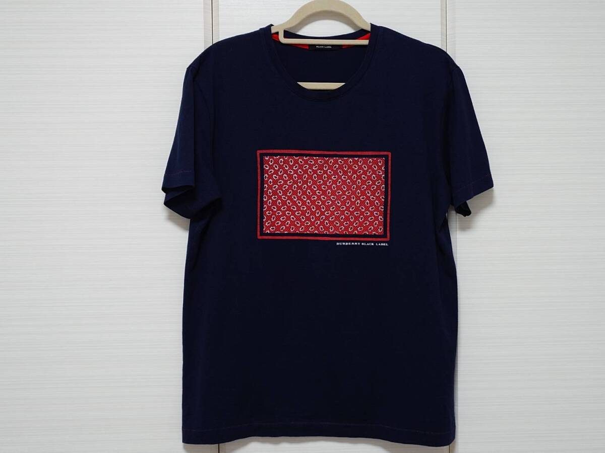 - ★美品 国内正規品 バーバリー ブラックレーベル コットンプリントTシャツ 3(L) 紺色★