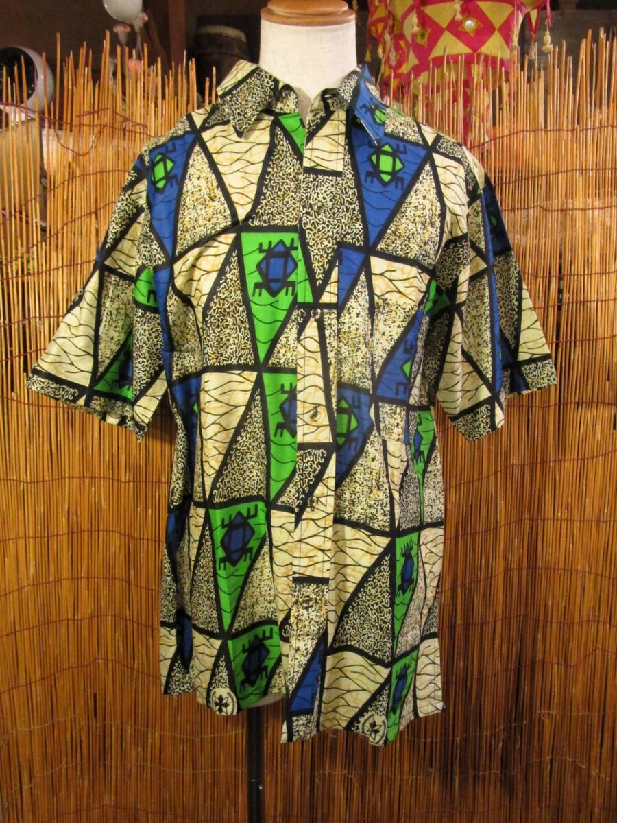 - ⑭新品*男女兼用*コットン素材*アフリカンプリント*半袖*シャツ*L