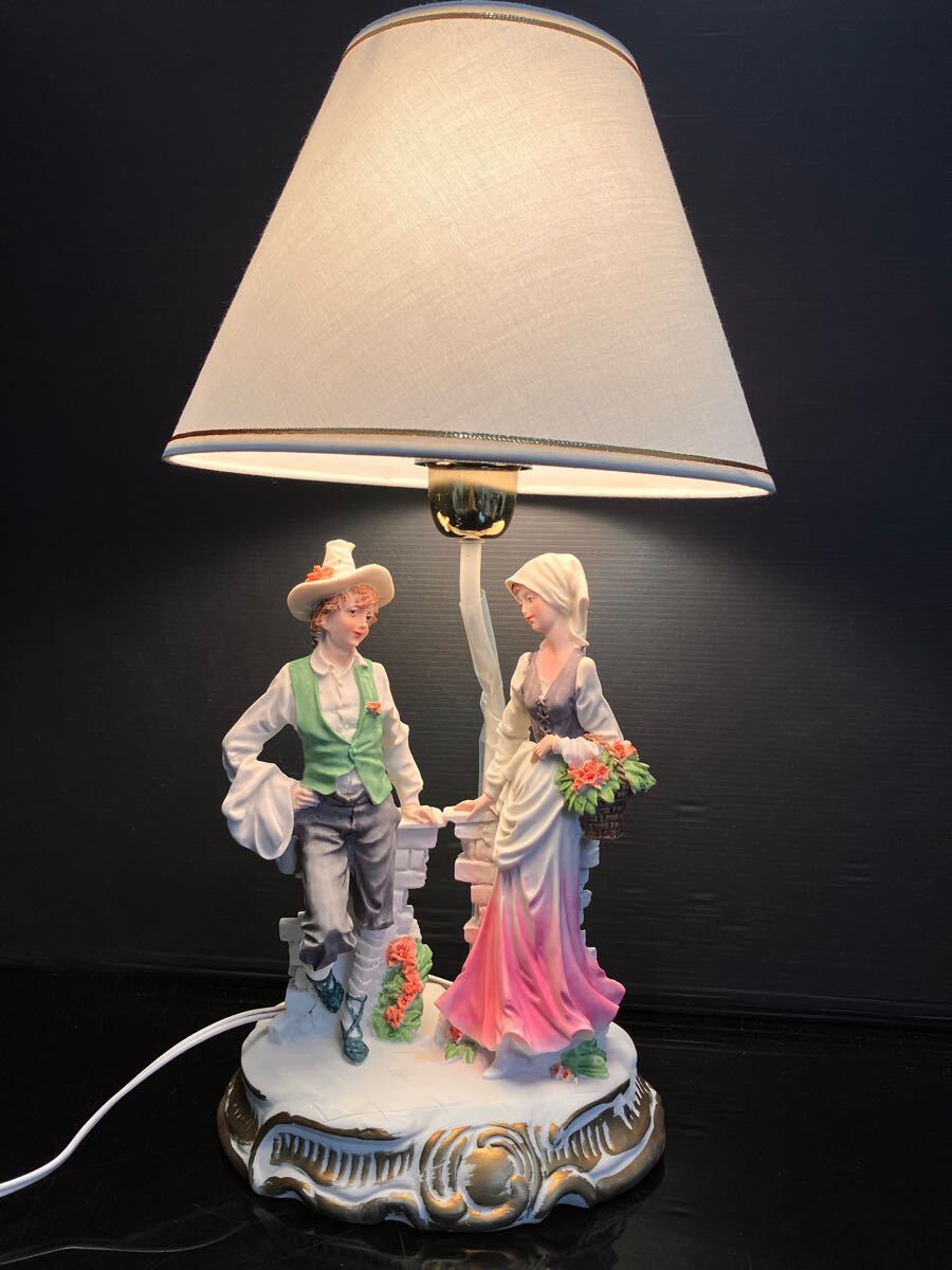 - D(0717k3) 陶器人形 スタンドランプ テーブルランプ シェードランプ 照明 インテリア 西洋 アンティーク調 点灯ok!