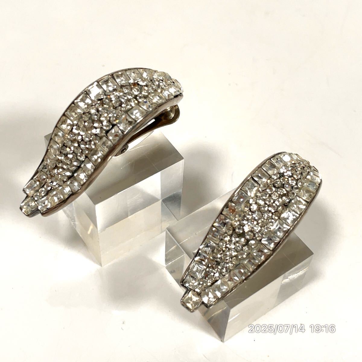 > ARMANI ジョルジオ アルマーニ 大粒 リーフ調 シルバーカラー ラインストーン イヤリング ピアス アクセサリー ファッション 装飾品 小物