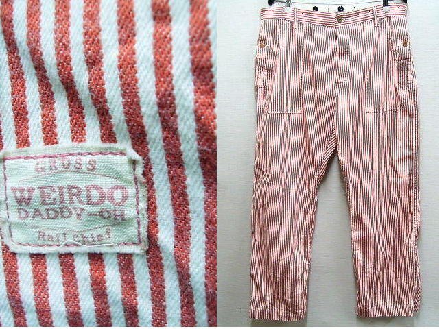 - ◇即決[XL]WEIRDO 15SS WEIRDO×RAILCHIEF OVERPANTS 太ヒッコリー ストライプ ベイカーパンツ レイルチーフ デニム ウィアード■6581