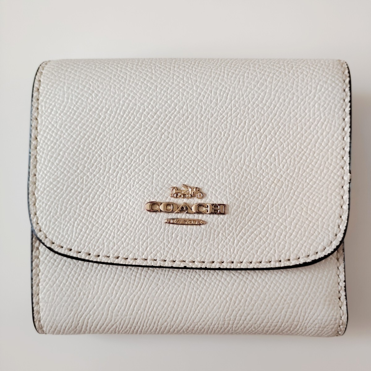 - COACH★財布 三つ折り財布 レザー スモール コンパクト ウォレット コーチ アイボリーホワイト×桜ピンク×キャメル