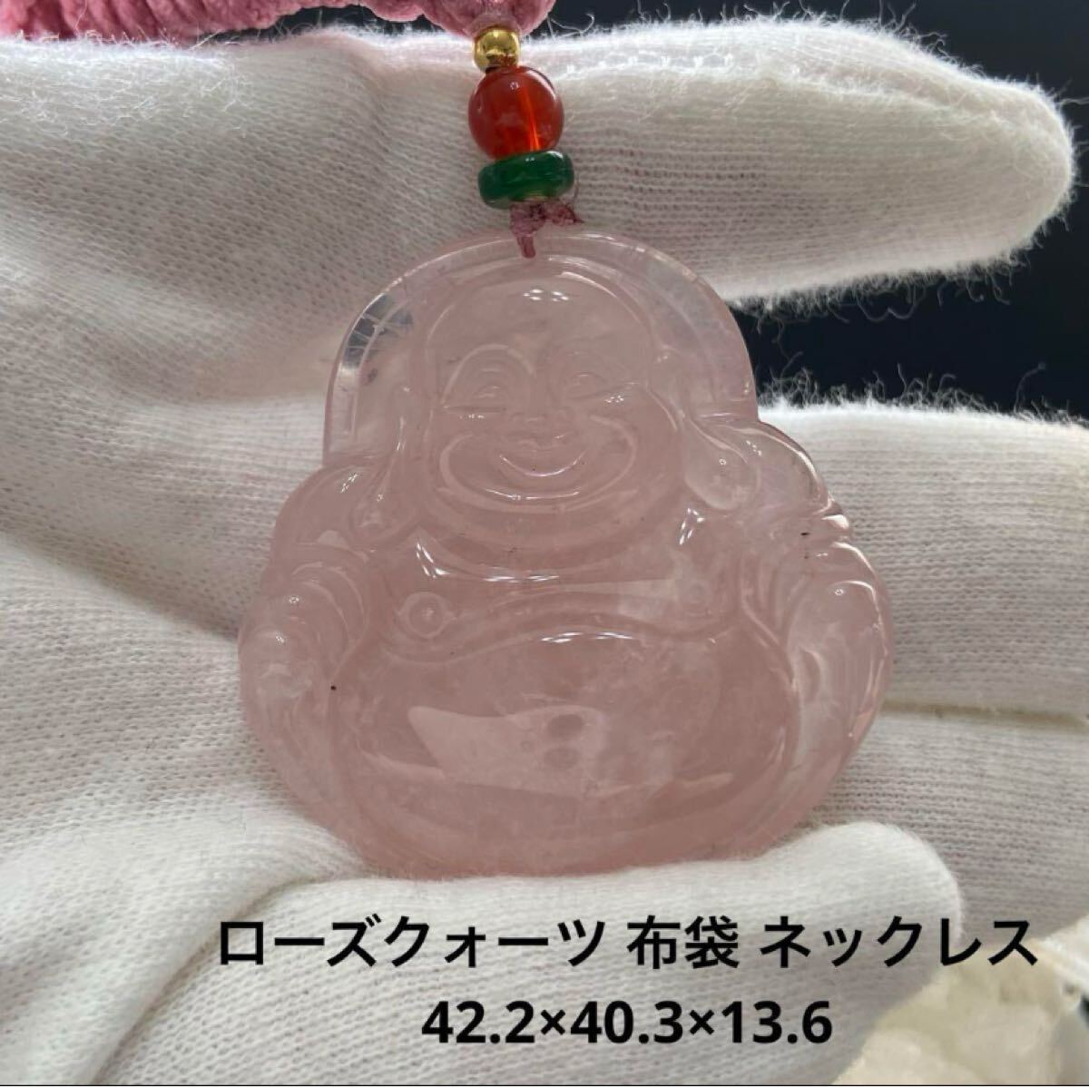 - D613 ローズクォーツ 布袋 ネックレス 42.2×40.3×13.6