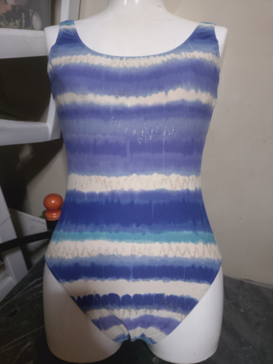 - M4313◆ungalo paris◆セレブなブルー系ストライプ柄ワンピース水着◆11L