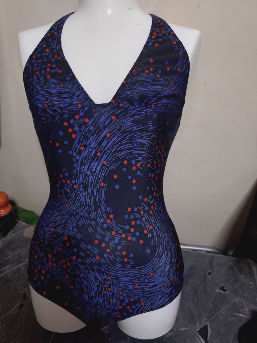 - M4323◆軽量◆Fair Nikki◆セレブなブルー系模様柄ワンピース水着◆9М