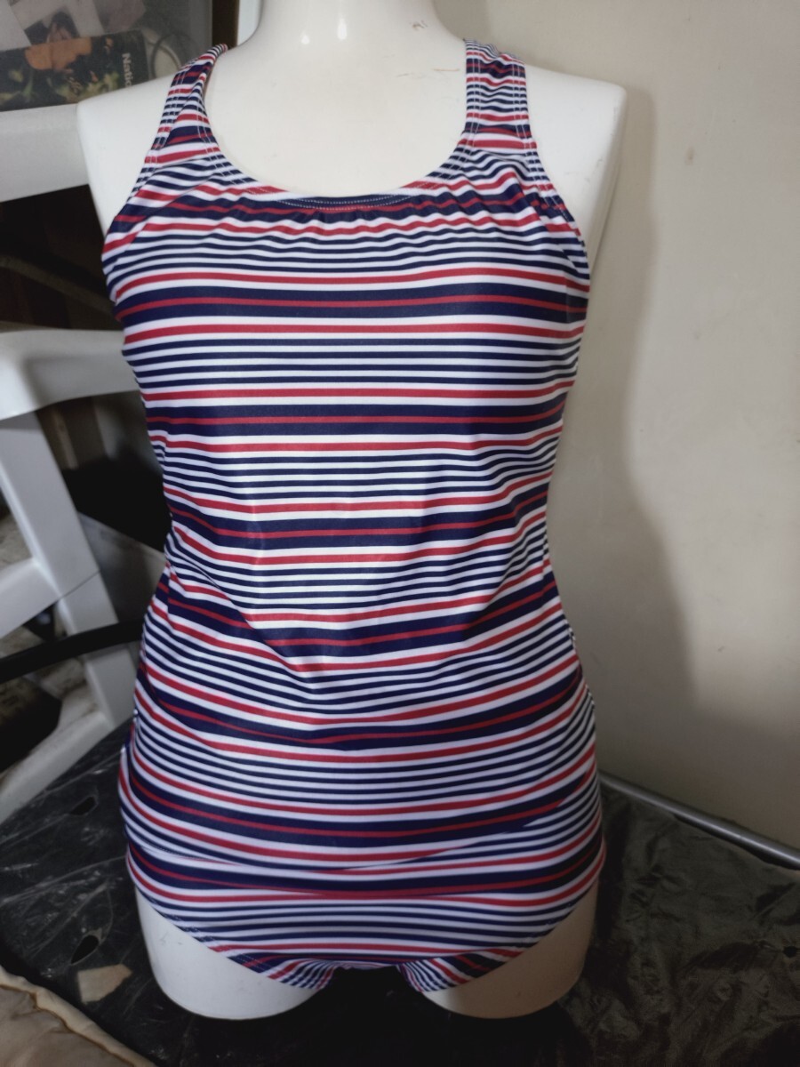 - M4360◆hiromichi nakano◆セレブなレッド系ストライプ柄ワンピース水着◆9М