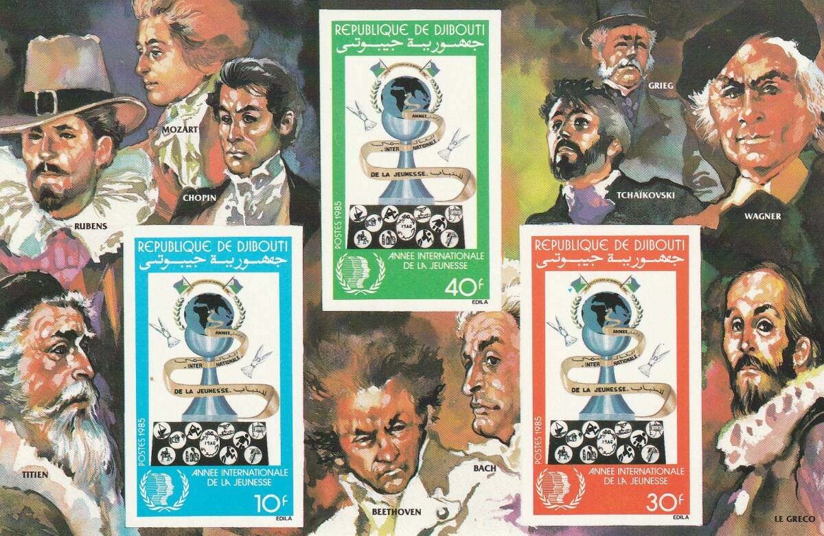 - (ジブチ)1985年世界青年イヤー小型シート無目打ち、マイケルカタログ評価35ユーロ(海外より発送、説明欄参照)