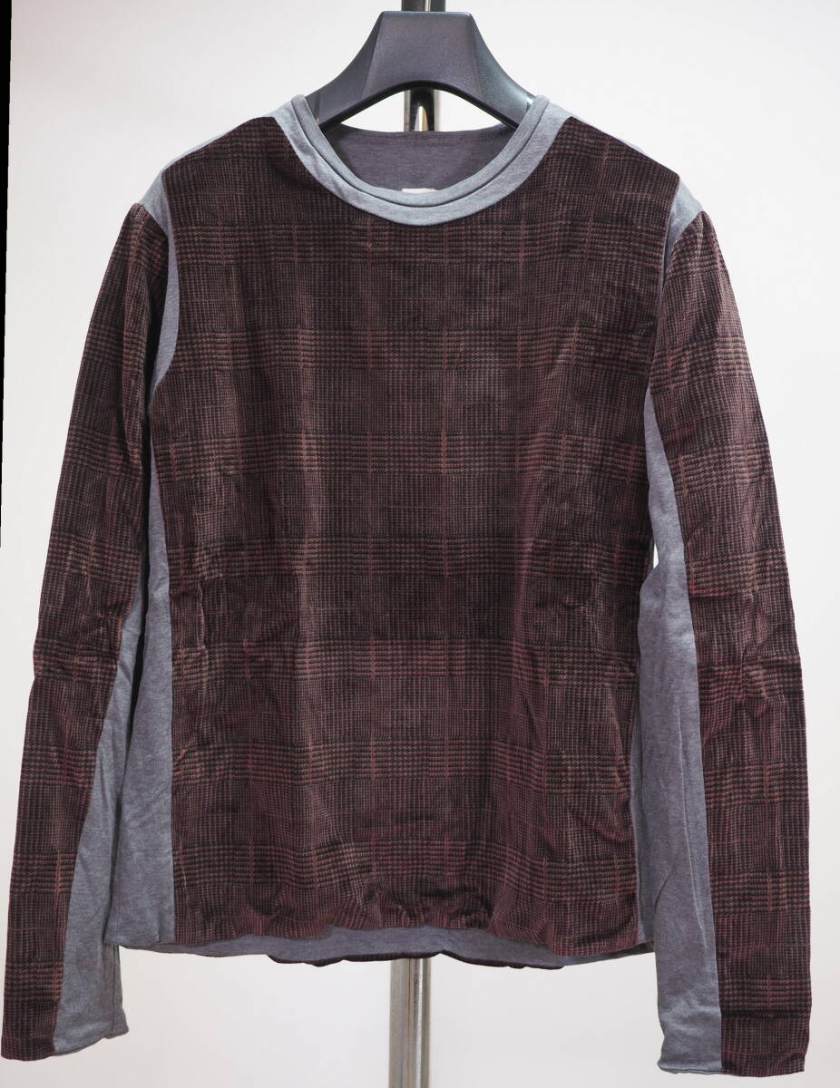 - m's braque エムズブラック ベロア切り替えカットソー40灰×茶 日本製