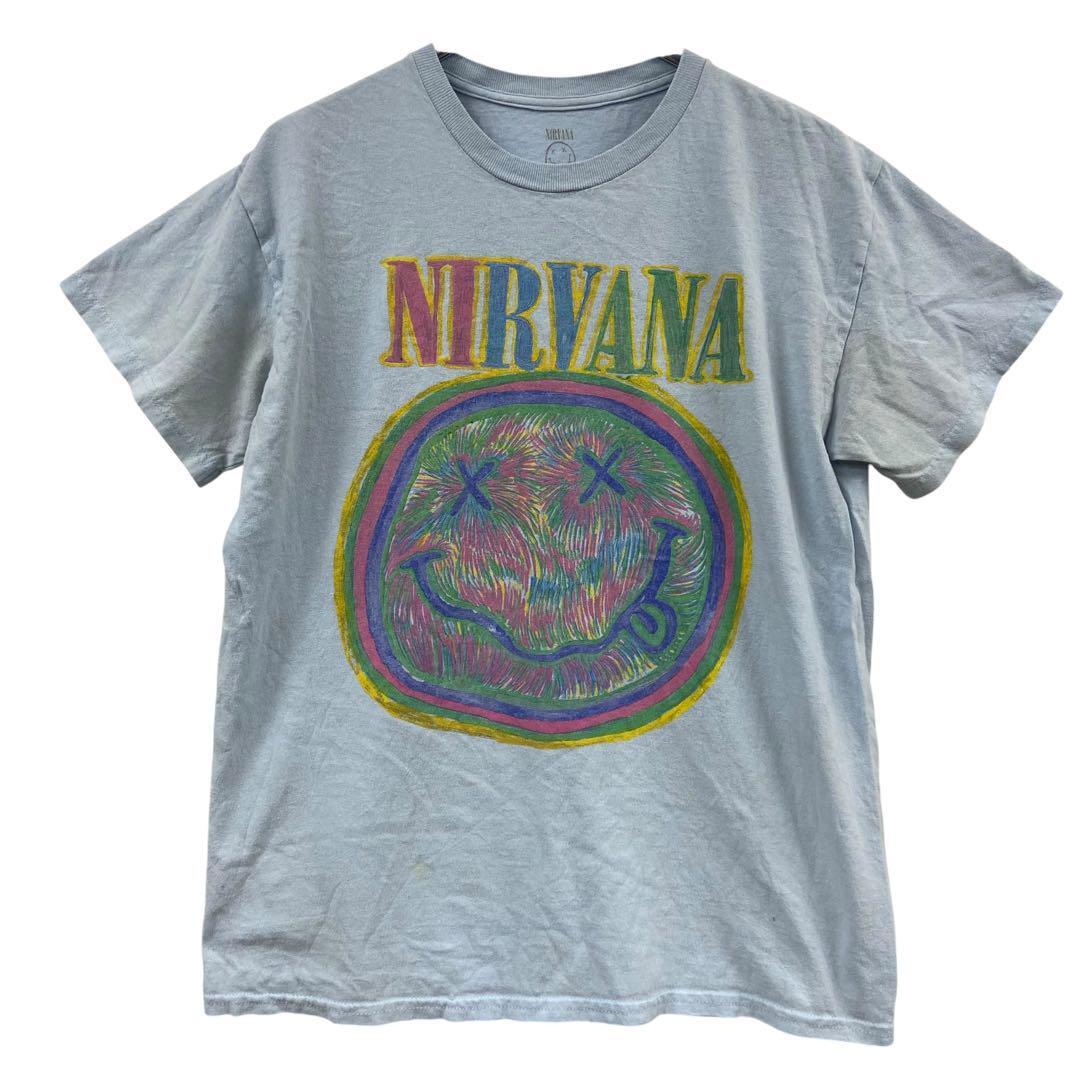 - ニルヴァーナ メンズTシャツ 水色 M スマイリーフェイス 丸首【4803】