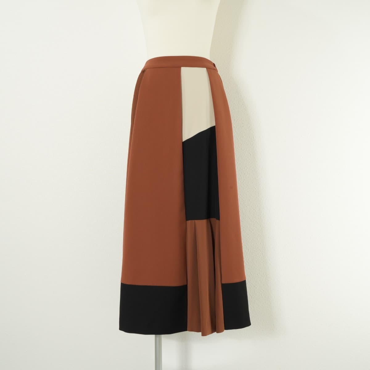 商品名:未使用 AMERI アメリ COLOR SCHEME SKIRT カラースキーム スカート ロング丈 アシンメトリー プリーツ 切替 ブラウン