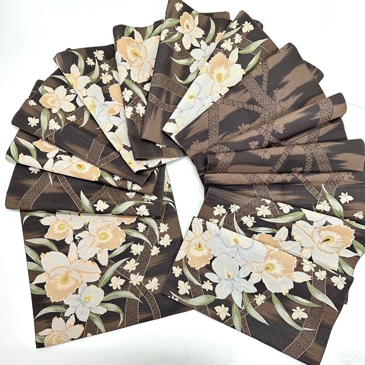 > 【七福】c669 逸品 高級品 正絹 袋帯 六通 紹巴 カトレア 金糸 豪華
