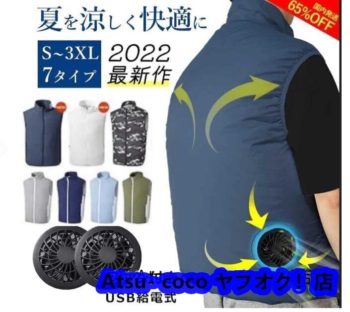 - メンズ ベスト USB付 空調服ベスト 空調服ファン付き 空調ウエア 熱中症対策 冷却服 UVカット作業服 【7色、サイズ選択可能】S~3XL