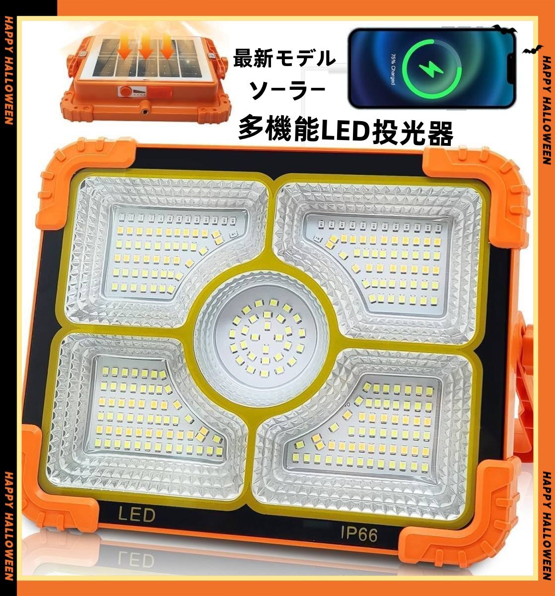 > 期間限定送無料!最新モデル!多機能ソーラー充電式LED投光器・非常灯 100W相当ー応急充電・停電・災害・警告・移動販売・キャンプに最適!