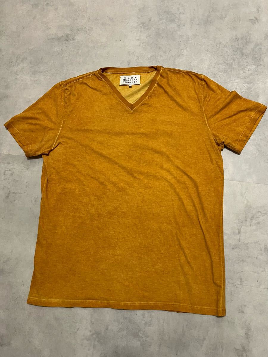 > 【美品】Maison Martin Margiela 10Line Garment Dyed T Shirt V Neck Sz Large Faded Orange 12SS マルジェラ Tシャツ 半袖 ダイ染