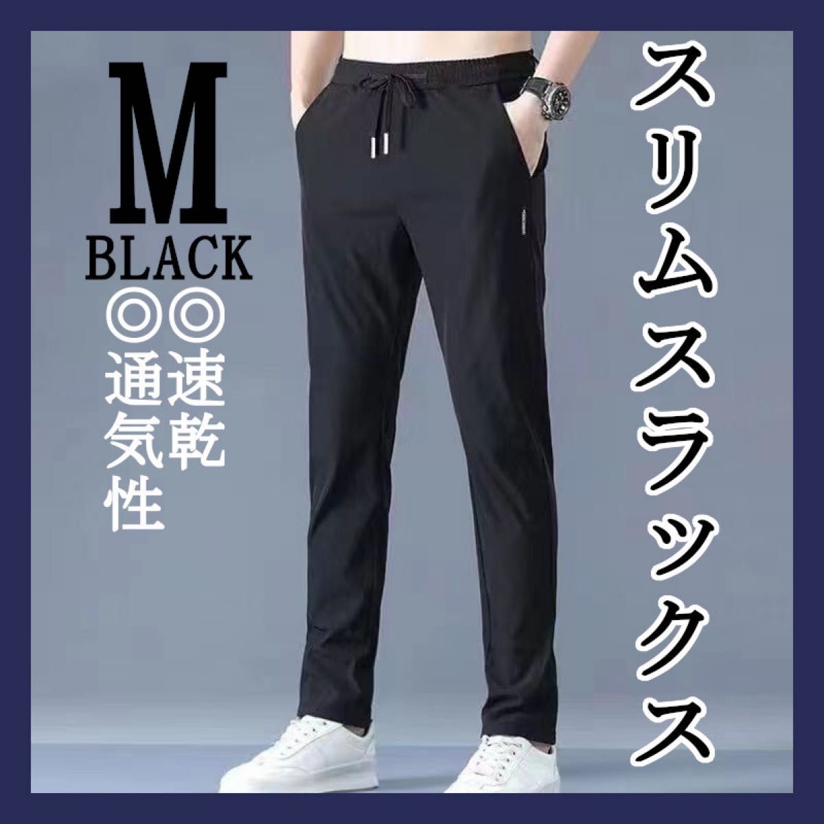 - M ブラック スリムスラックス 速乾 通気性 ジョガーパンツ スウェットパンツ