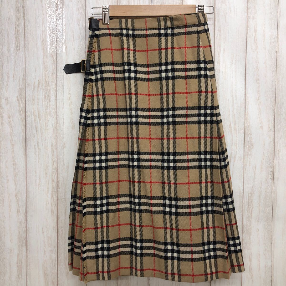 - BURBERRYS バーバリーズ 巻きスカート ラップスカート プリーツ ウール100% ベルト チェック ベージュ系 レディース YF439