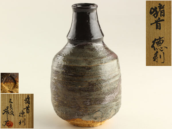 - 日本美術 高垣帰泥 猪首 徳利 共箱 G1907