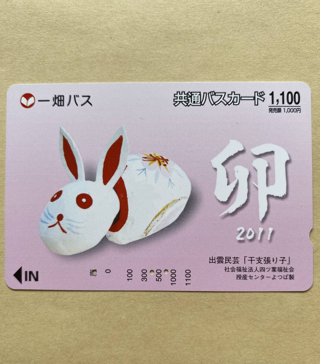 - 【使用済】 バスカード 一畑バス 卯2011 出雲民芸「干支張り子」 社会福祉法人四ツ葉福祉会 授産センターよつば製