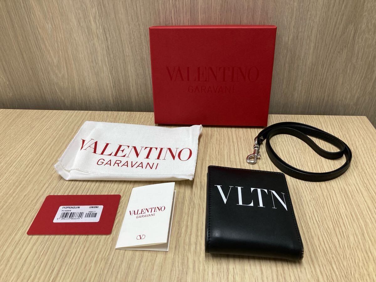 - VALENTINO ヴァレンティノ VLTNロゴ ネックウォレット 財布 小銭入れ ストラップ付 二つ折り財布 レザー レディース ブラック