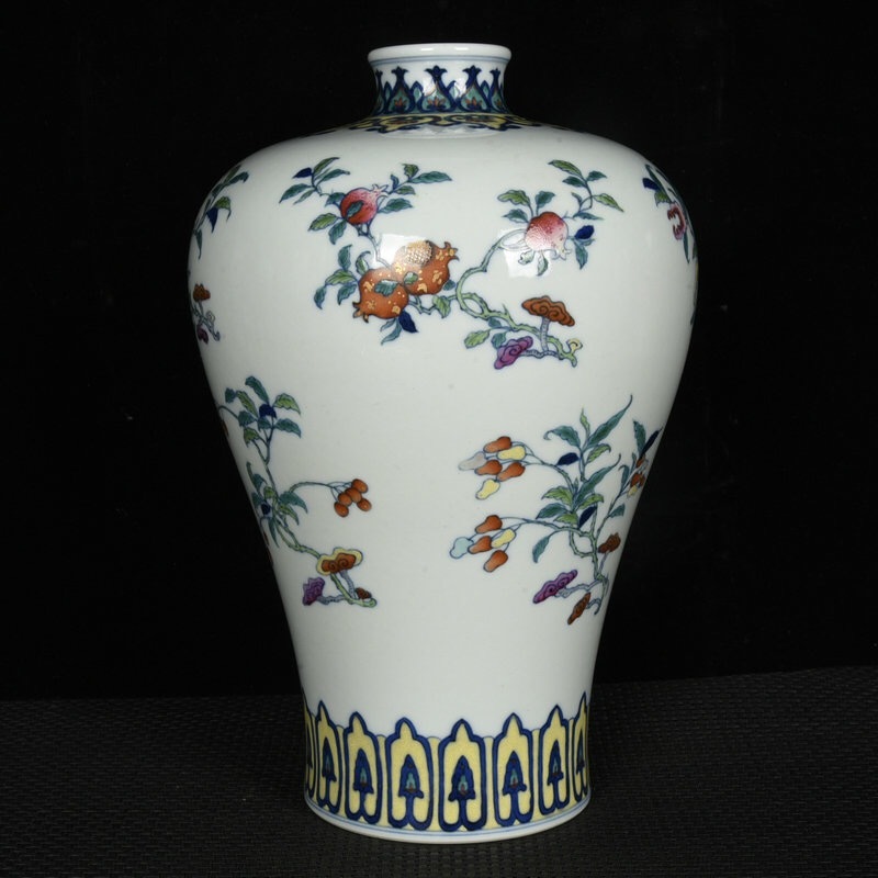 - ▽鴻▽ 清 乾隆年製款 古陶瓷品 斗彩 描金 折枝果紋 梅瓶 陶藝 古賞物 古董品 時代物 稀少珍品 中国古玩 中国古美術