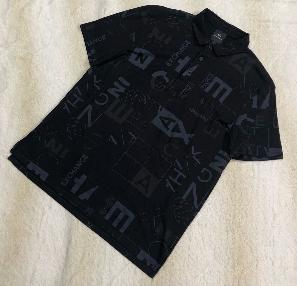 - ☆ARMANI EXCHANGE☆アルマーニ エクスチェンジ ビッグロゴ 半袖 ポロシャツ S 黒系 ロゴ 総柄 ジョルジオアルマーニ 3KZFFD ZJH4Z