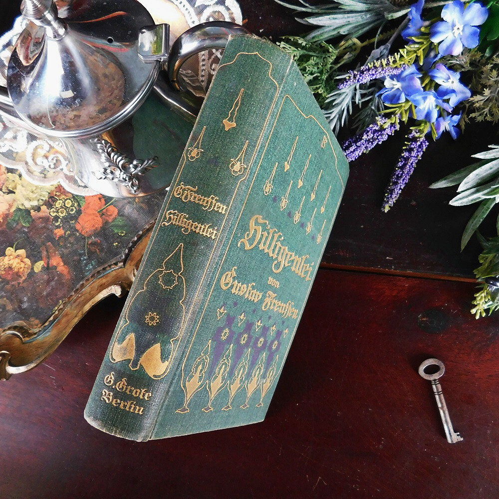 - 1905年:*゜表紙が素敵なドイツの宗教小説 グリーン ドイツのヴィンテージ本 緑 アンティーク 洋書 古書 アンティークブック 骨董