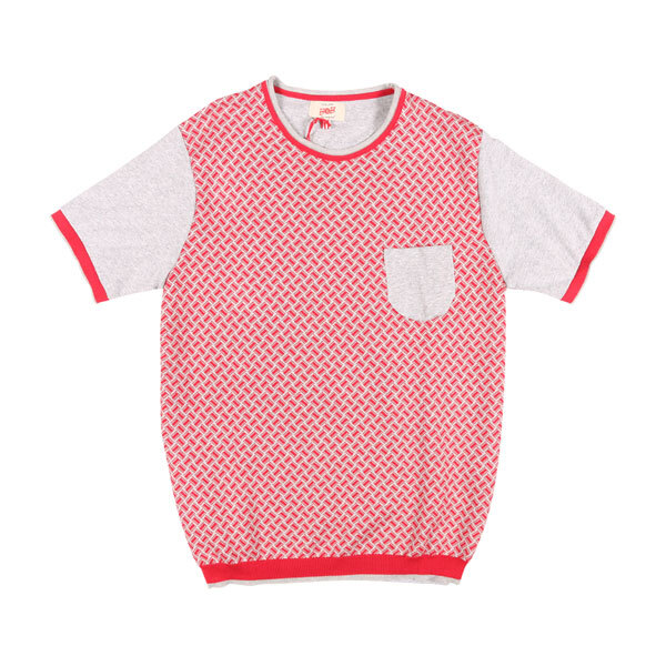 > BOB(ボブ) Uネック半袖Tシャツ IVON グレー x レッド XXL 24924 【S24926】