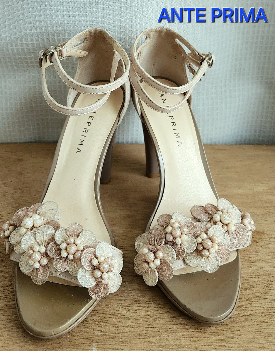 - 大変美品 ANTEPRIMA 日本製 花モチーフのパンプス オープントゥ サンダル