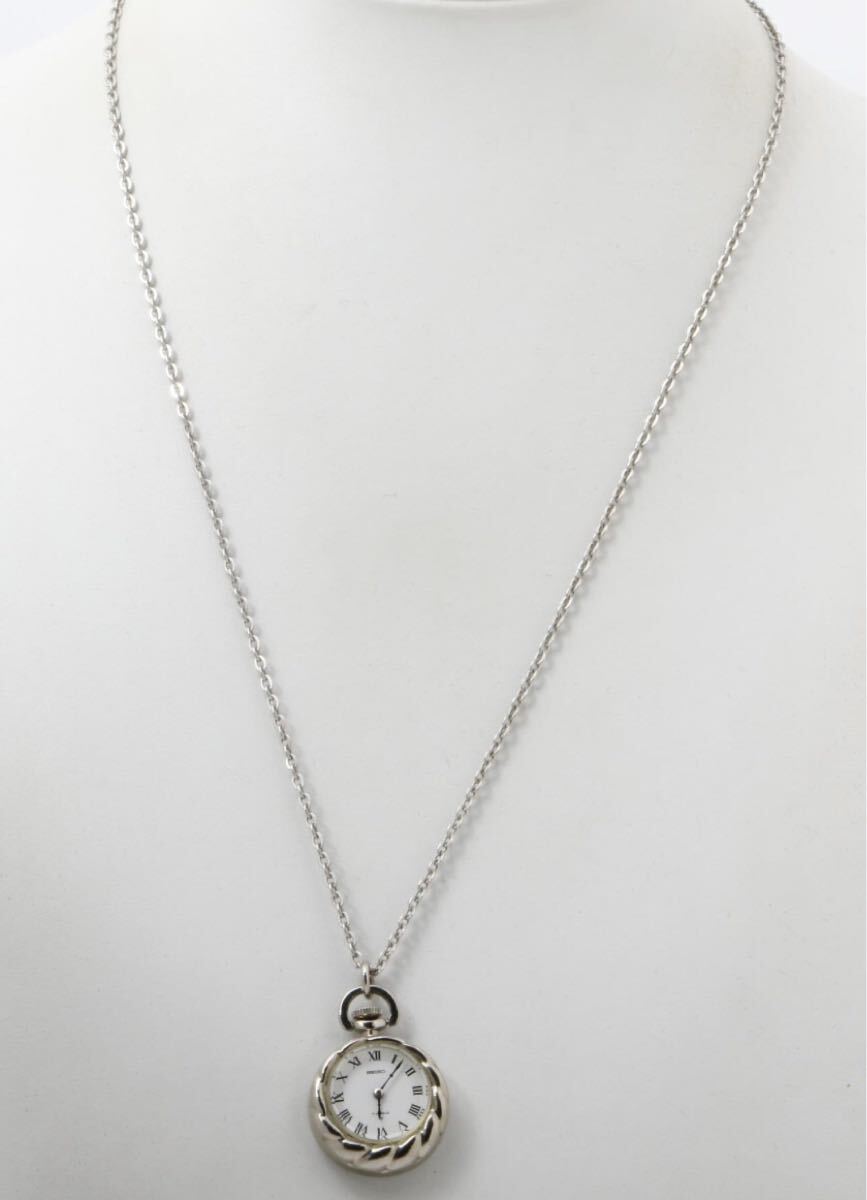 - セイコー 時計ネックレス 懐中時計 ホワイト 手巻き 社外チェーン