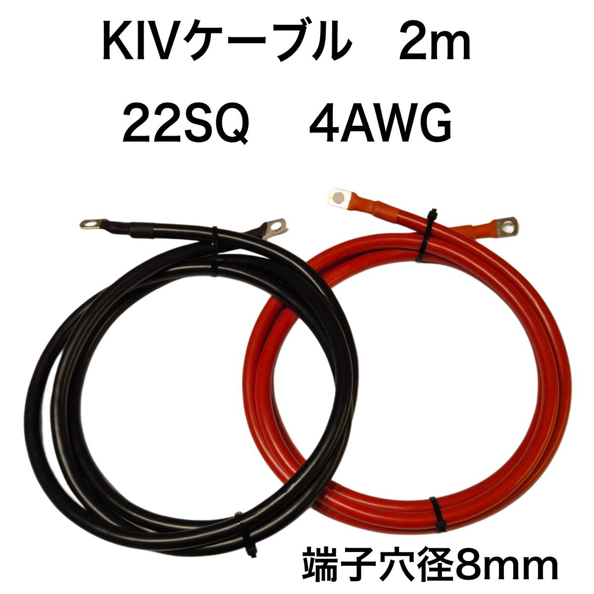 - 2m KIV赤黒2本 22SQ 4AWG バッテリーケーブル 8㎜端子接続防水加工済み (600 V 115A)