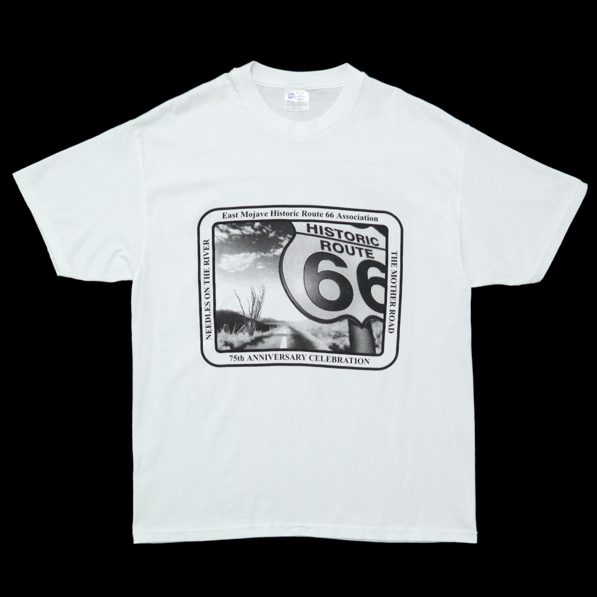 > 00s 2001年 ビンテージ ROUTE66 ルート66 75th アニバーサリー 75周年 Tシャツ 両面 フォトプリント ピクチャー 白 古着 メンズ L 2000年代