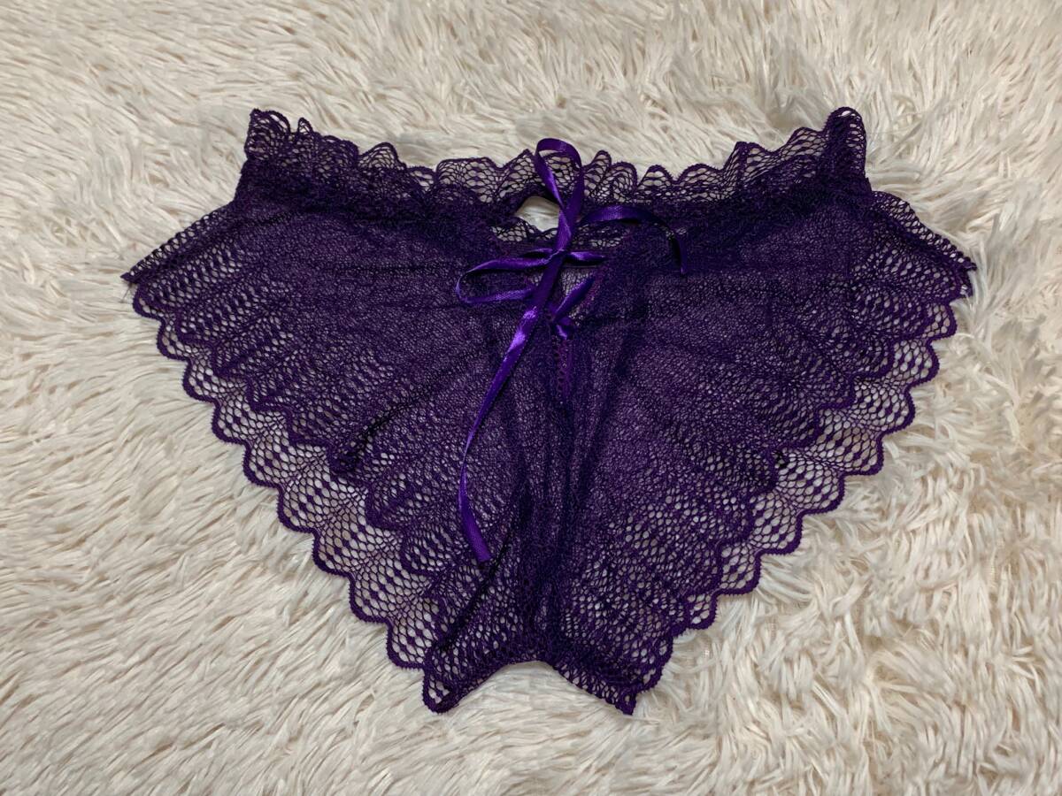 - ★紫シースルースケスケレース後ろ編み上げ付きヒップハング ショーツパンツランジェリー★1002