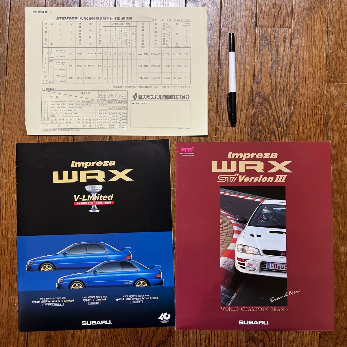 - スバル インプレッサ WRX カタログ・価格表・ 3点 1996-98年◆GC8 typeR typeRA V-Limited WRCチャンピオン記念車◆初代 STI バージョンⅢ