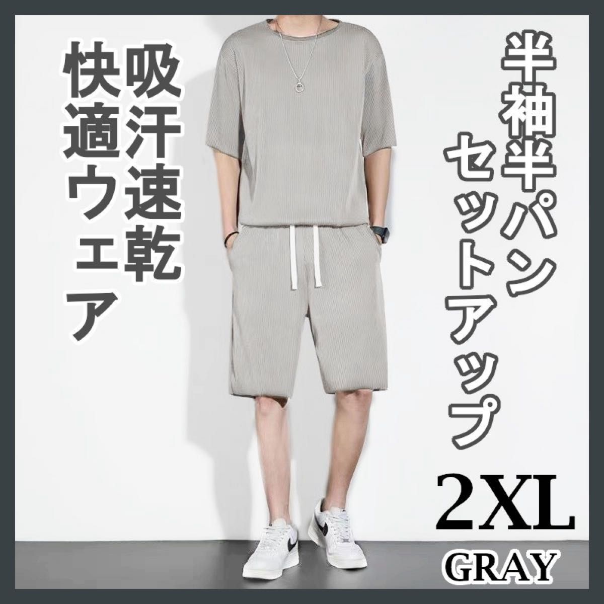 - 2XL グレー セットアップ メンズ ルームウェア 吸汗速乾 冷感 通気性 パジャマ 上下セット スポーツ フィットネス