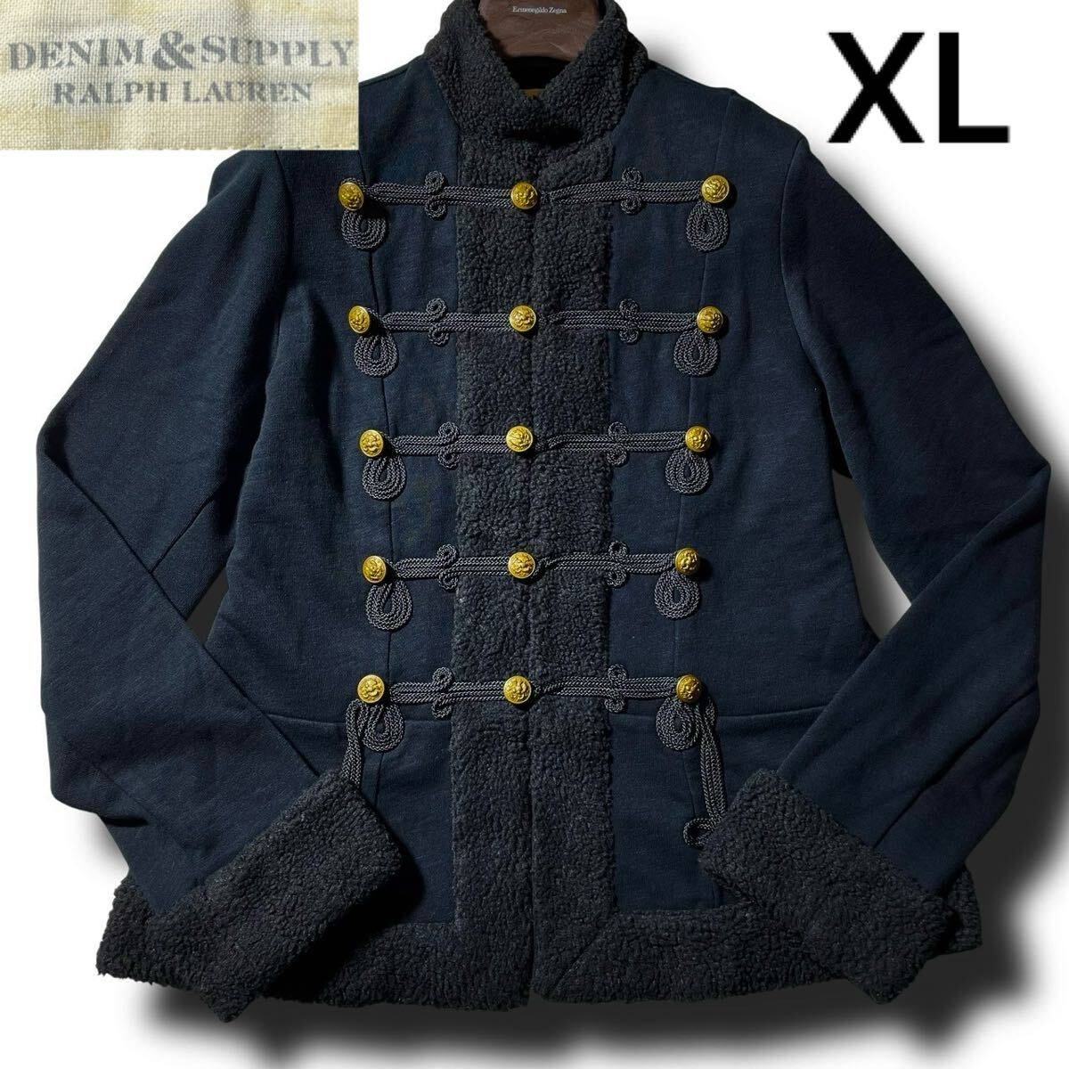 > 希少 XL RALPH LAUREN DENIM & SUPPLY ナポレオン ジャケット 金ボタン スウェット チャイナボタン ボア ブラック ラルフローレン メンズ