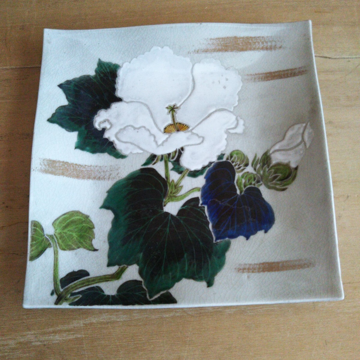 - 25072206 九谷焼 角皿 大振り花柄 大皿 和食 九谷焼プレート