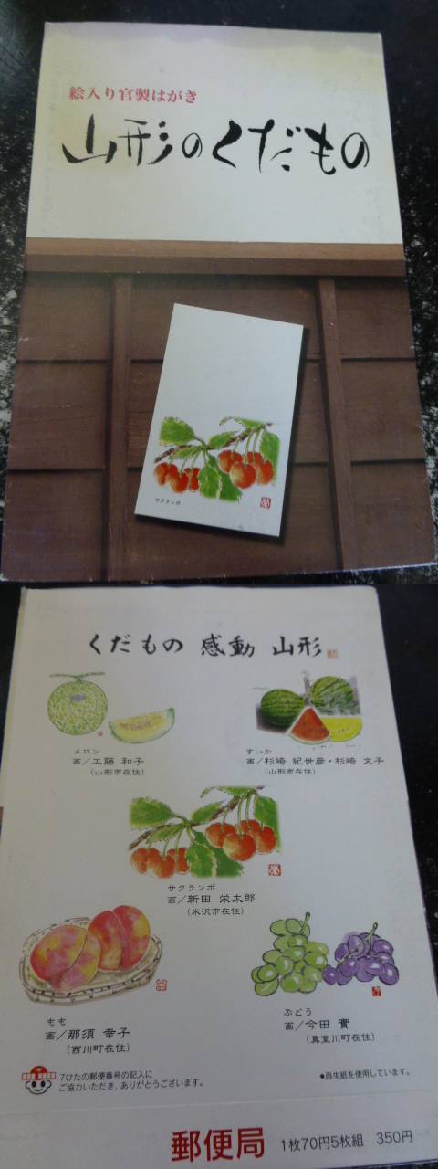 - ☆絵入りはがき 山形のくだもの 風景印 5枚 タトウ入り