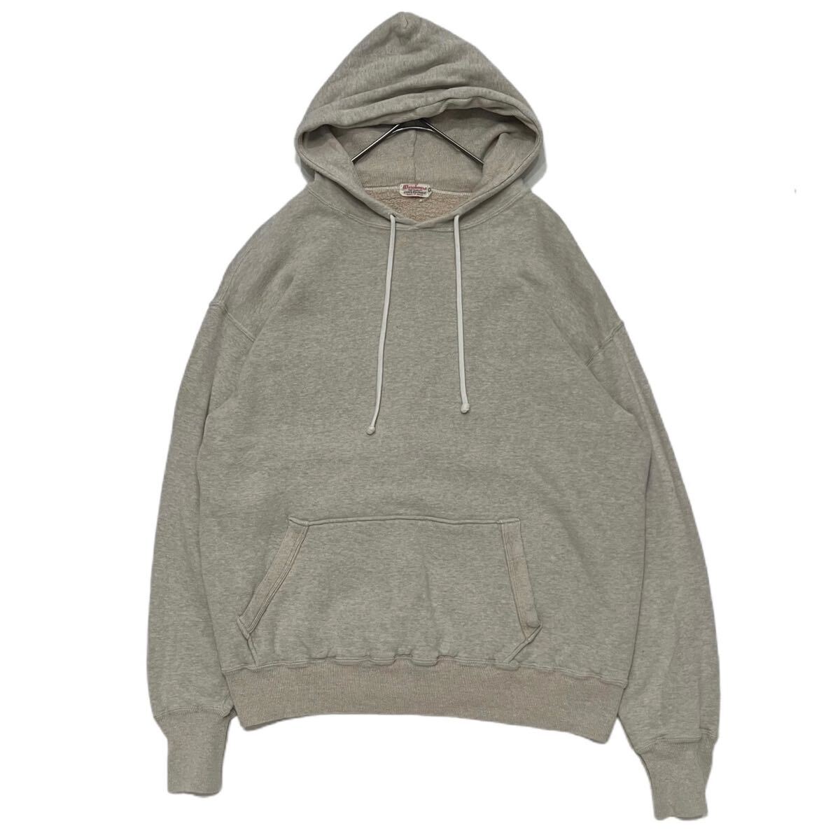 > 【 WAREHOUSE 】 美品 2本針 フード 無地 スウェット パーカ 42 XL ビッグ 杢 グレー パーカ 日本製 ウェアハウス