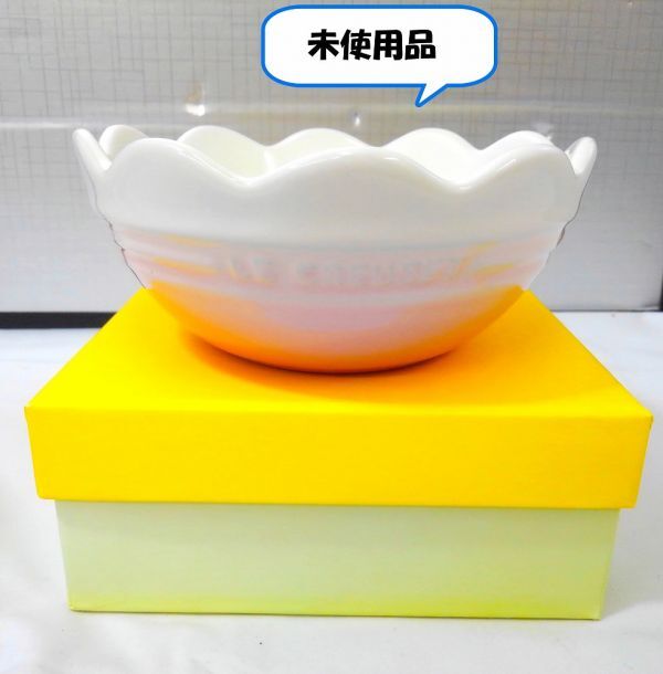 > 10259【未使用品】LE CREUSET ル・クルーゼ フリルボウル ピンク系カラー 箱にシール跡あり サラダボウル お皿 食器