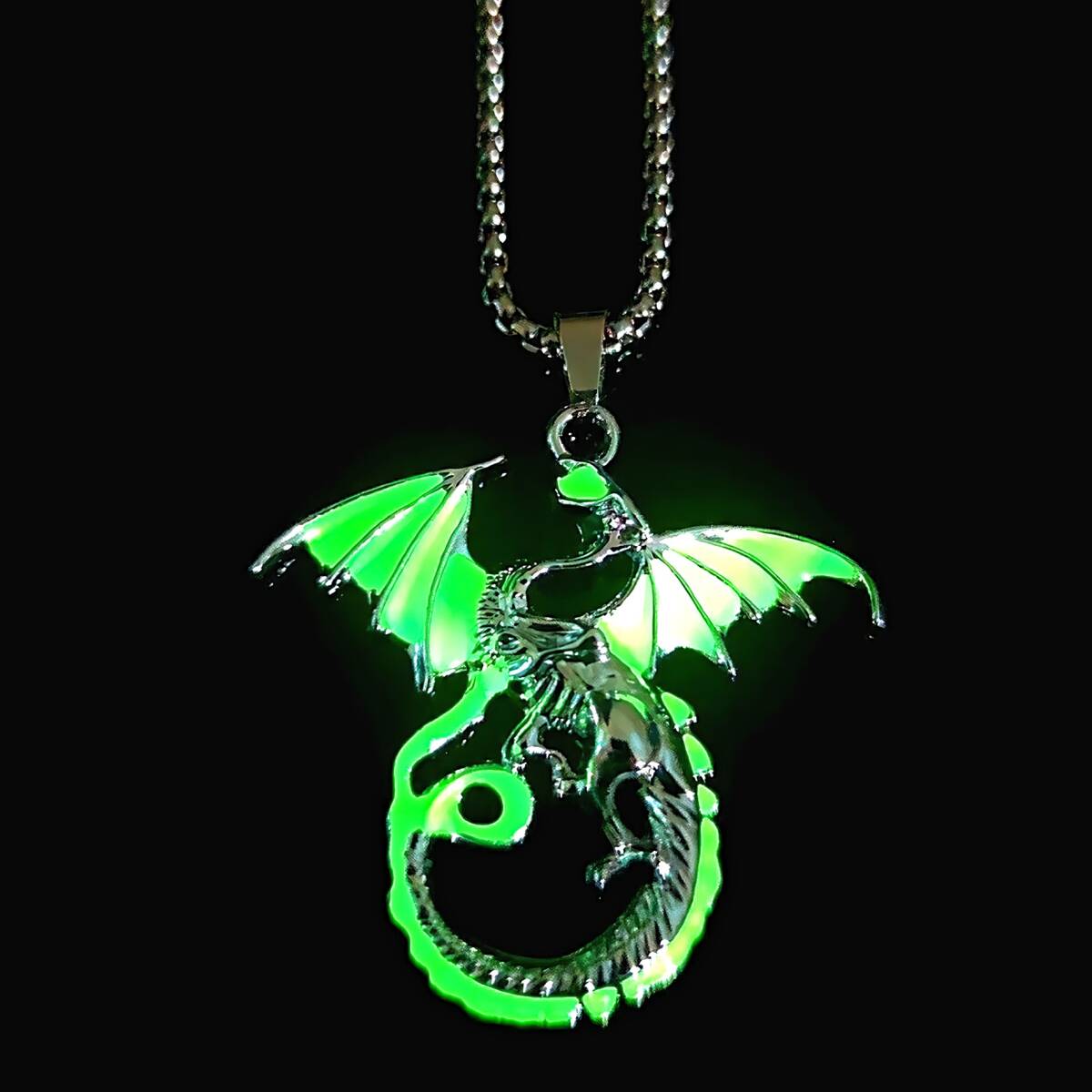 - 新品★送料無料★暗闇発光 4色緑青水橙 焔龍ドラゴン炎プラチナ仕上925シルバーネックレス 誕生日プレゼント旅行連休夏ギフト国内発送