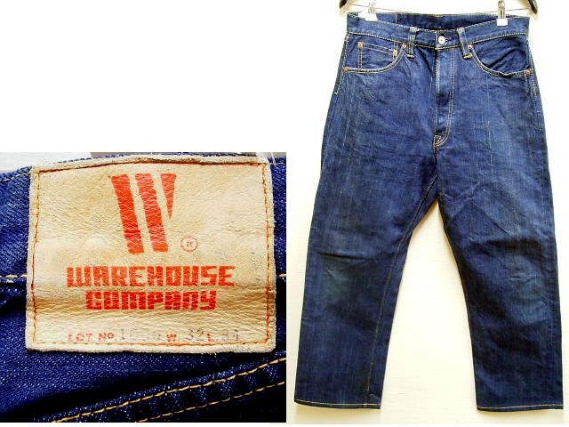 > 即決[W32]旧WAREHOUSE 1000 初期 天然藍 紺耳 赤タブ レプリカ セルビッチ デニム パンツ■374