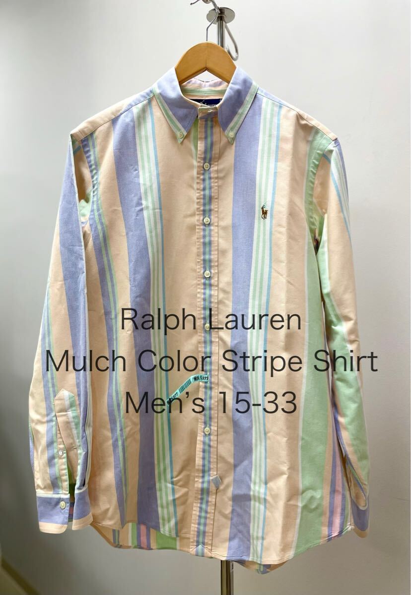 > 美品Polo Ralph Laurenポロ ラルフローレンBDボタンダウンメンズ15-33オックスフォード クレイジー パターン 長袖 シャツRRLビッグ シャツ