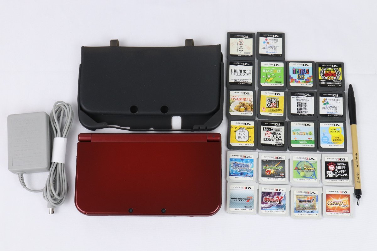 > 任天堂 new ニンテンドー 3DS LL 本体 RED-001 ソフト まとめて ポケモン モンスト など 色々 シリコンカバー 充電器 付き 【彩irodori】