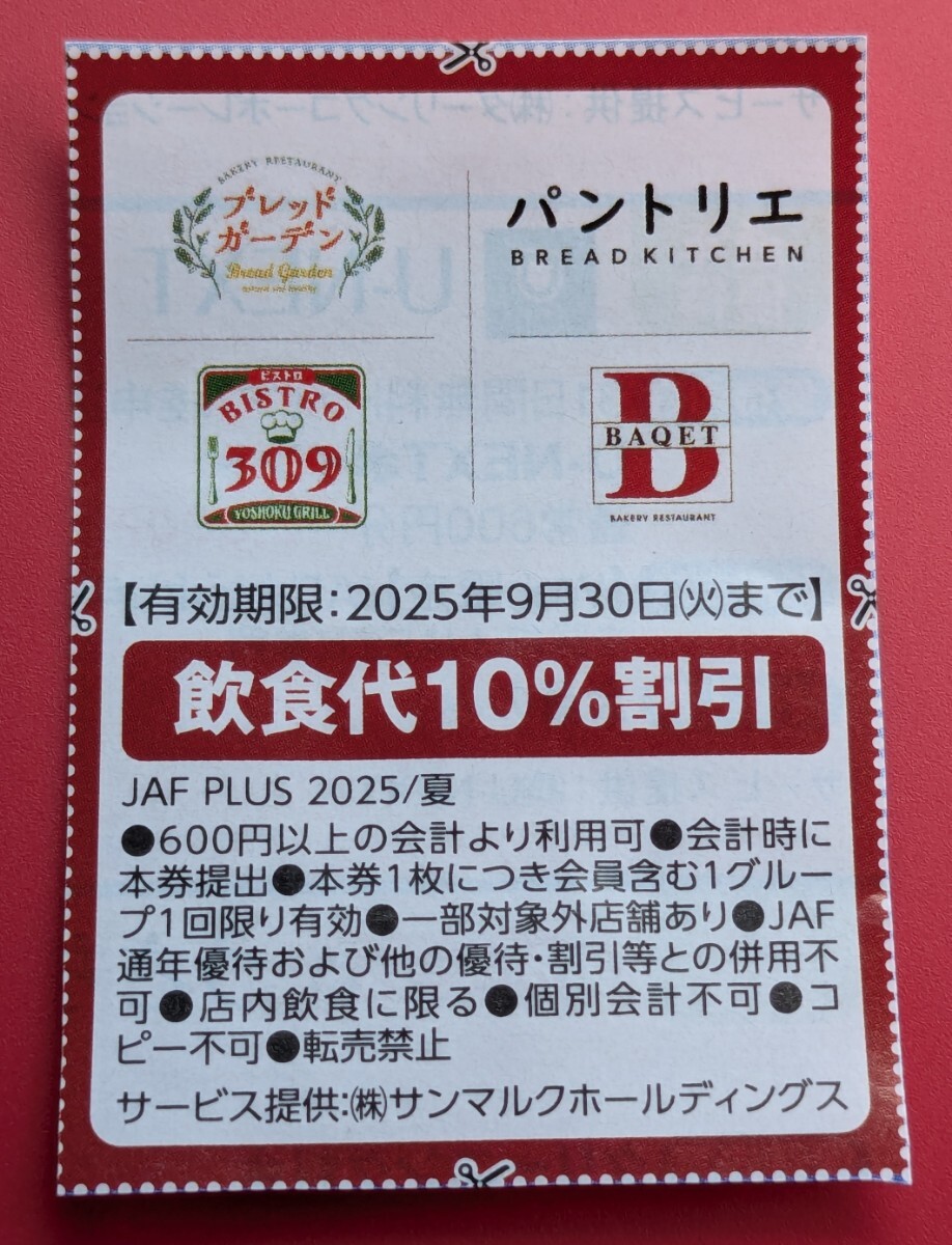 > ブレッドガーデン◆BAQET◆パントリエ◆BISTRO 309◆ブレッドガーデン★10%割引券★2025年9月30日まで★クーポン